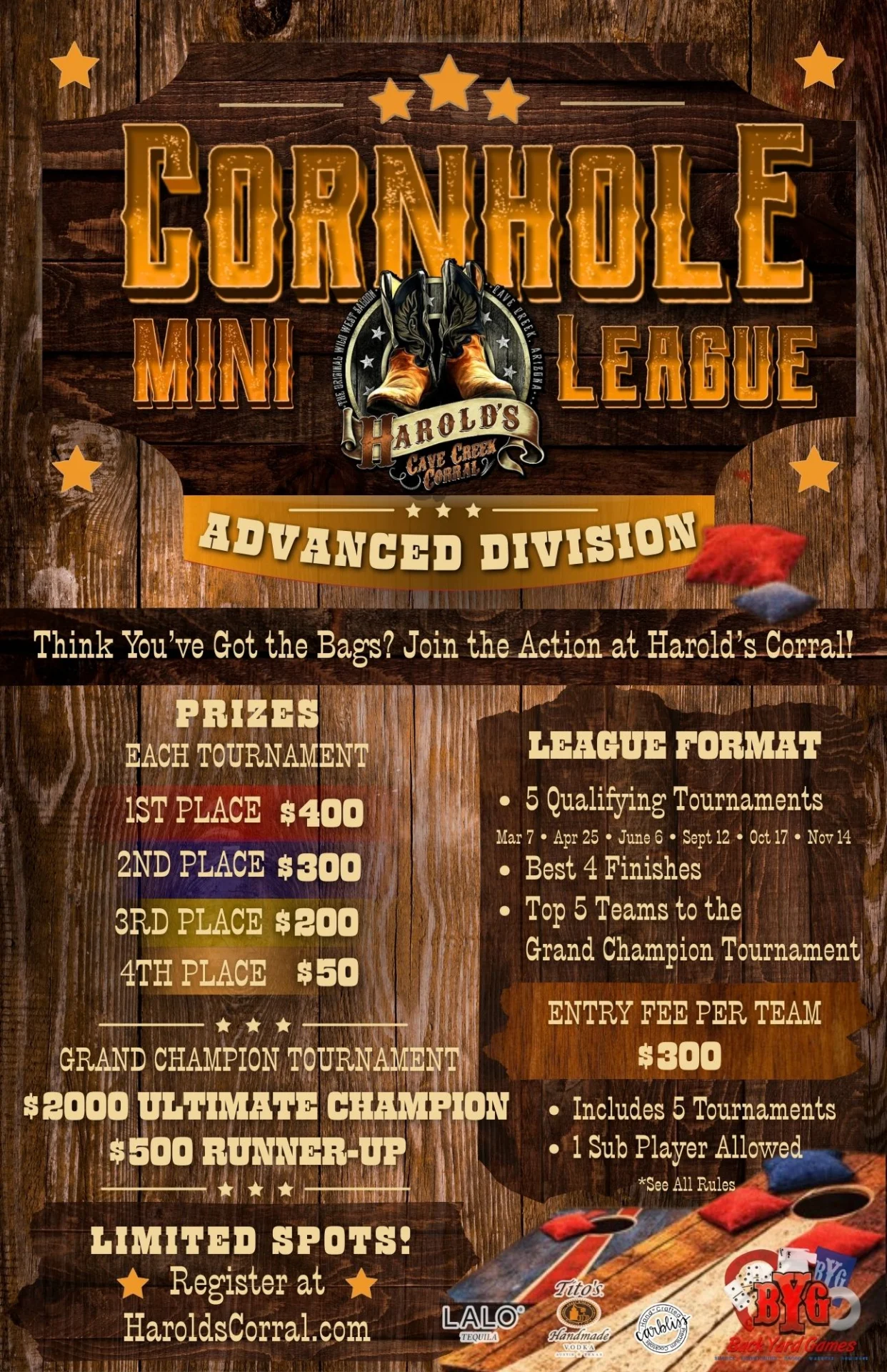 - $300 per Team (includes entry into all (5) qualifying tournaments)