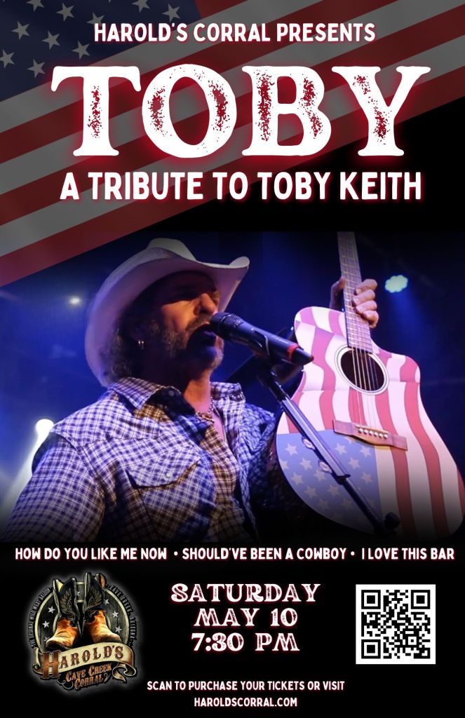 Get ready for a wild ride through the heart and soul of country music with TOBY, the ultimate tribute to the bad boy of country music, Toby Keith! This electrifying show is guaranteed to leave audiences on their feet, singing along to hit after hit of great country music, all brought to life by the one and only Hollywood Yates! The air pulsates with anticipation as Hollywood Yates takes center stage, belting out country music anthems that have become the soundtrack to countless lives. Sing your heart out to timeless classics like “How Do You Like Me Now,” “Should’ve Been a Cowboy,” and “I Love This Bar,” feeling every word resonate deep within your soul.