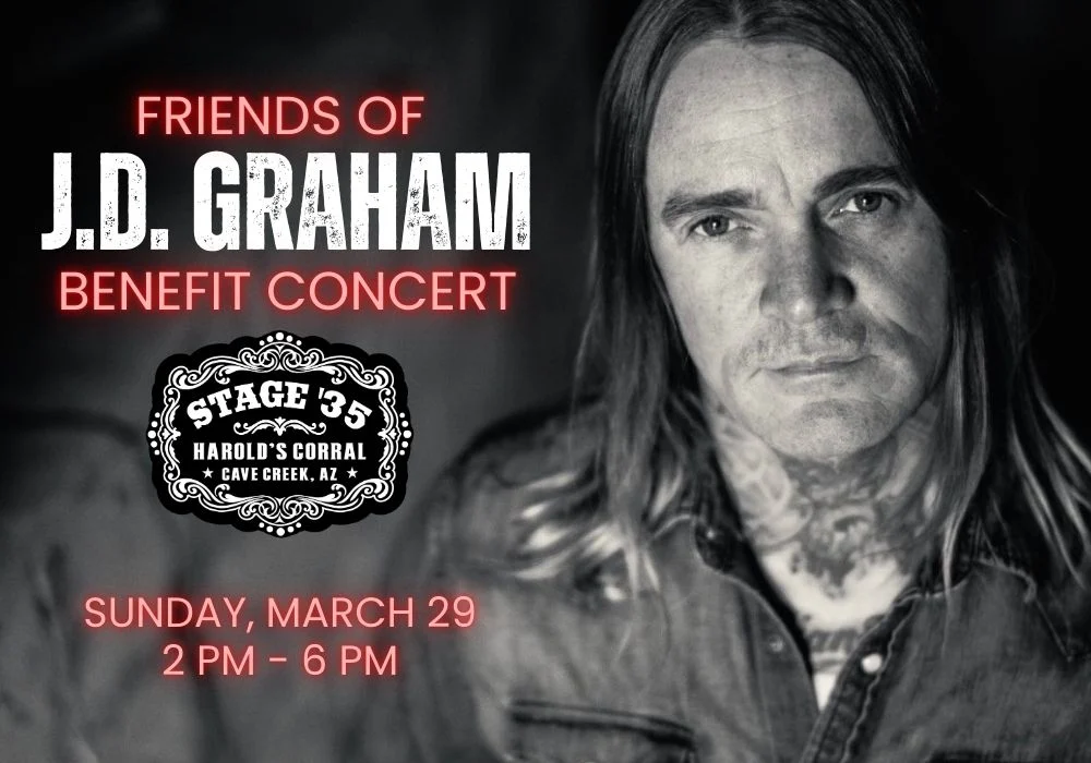 On February 24, J.D. Graham was involved in a devastating highway accident that left him with severe, life-altering injuries. After being struck by two semi-trucks, he had to be cut from his vehicle and was airlifted to a trauma center in Texas, where he remains under intensive care. J.D. has spent years sharing his talent, heart, and music with our community — now it’s our turn to rally around him. This benefit concert will help support J.D. and his family through the long road of recovery ahead. Join us and several Arizona artists raise funds and spirits for our friend J.D. Graham.